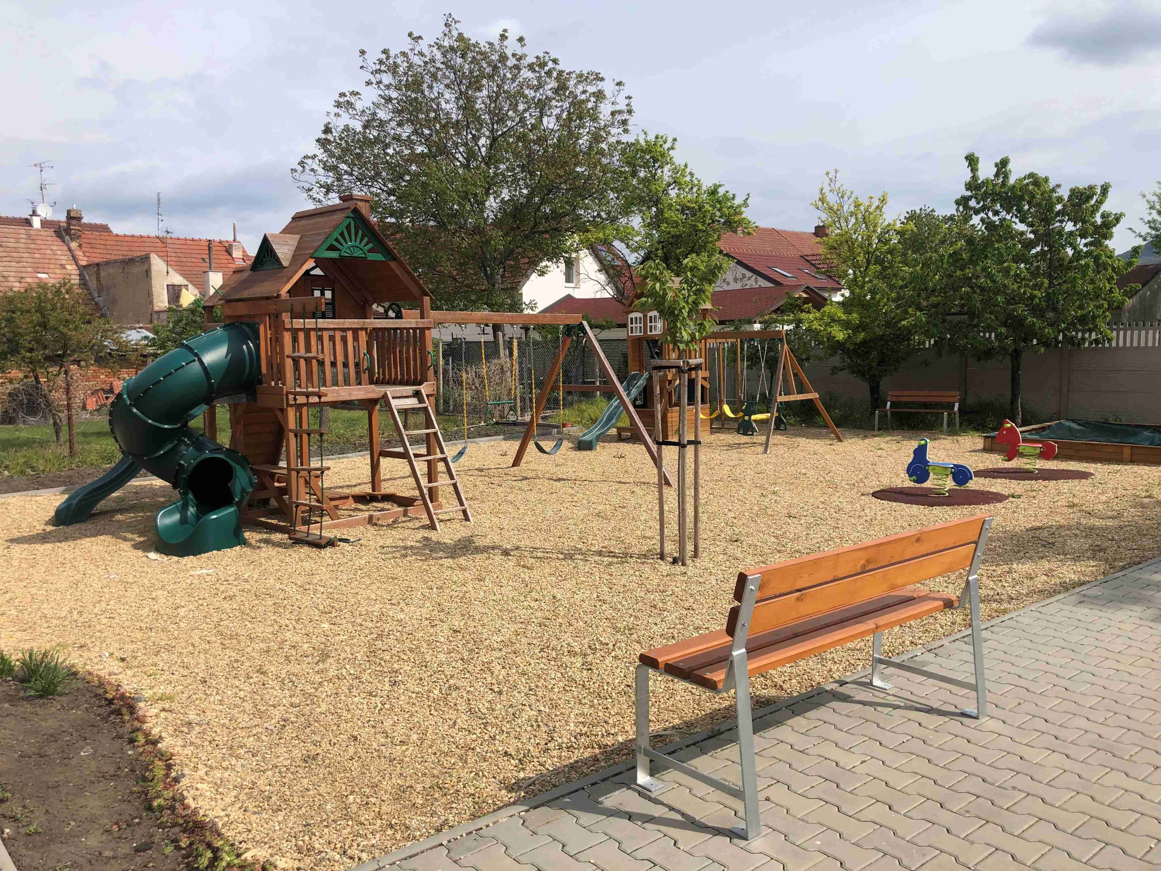 Zcela nové hřiště pro děti ve věku 3-12 let, nabízí pestré vyžití - houpačky, skluzavky, pískoviště a trampolínu.