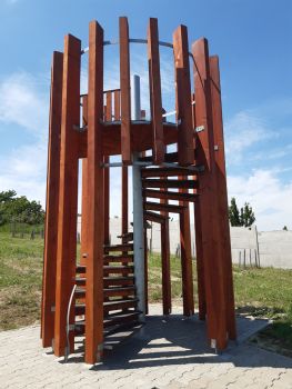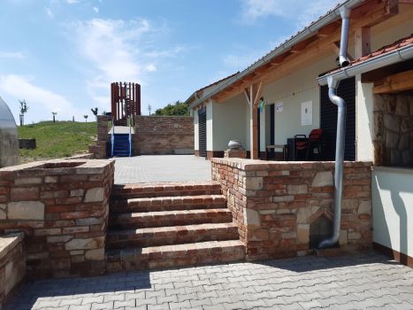 Součástí areálu je minirozhledna a venkovní kuchyň s posezením.