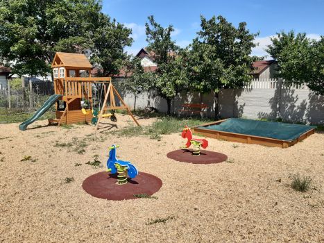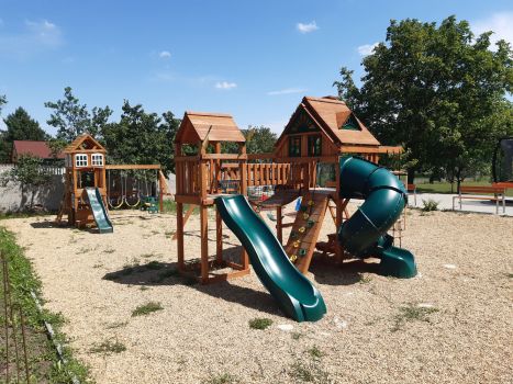 Zcela nové hřiště pro děti ve věku 3-12 let, nabízí pestré vyžití - houpačky, skluzavky, pískoviště a trampolínu.