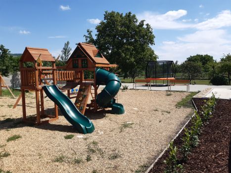 Zcela nové hřiště pro děti ve věku 3-12 let, nabízí pestré vyžití - houpačky, skluzavky, pískoviště a trampolínu.